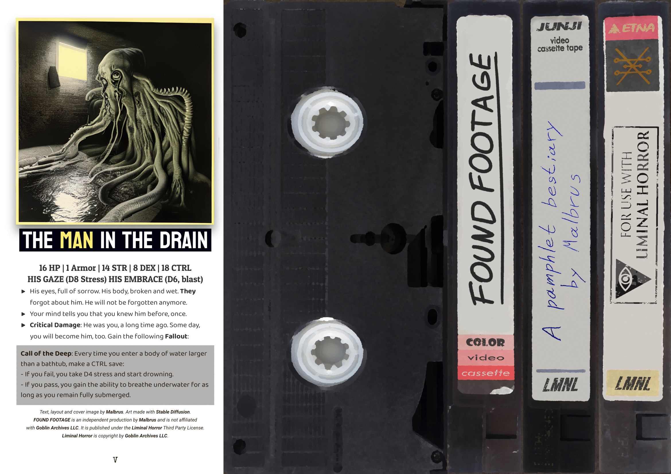 FOUND FOOTAGE is an independent production by Malbrus and is not affiliated with Goblin Archives LLC. It is published under the Liminal Horror Third Party License. Liminal Horror is copyright by Goblin Archives LLC.